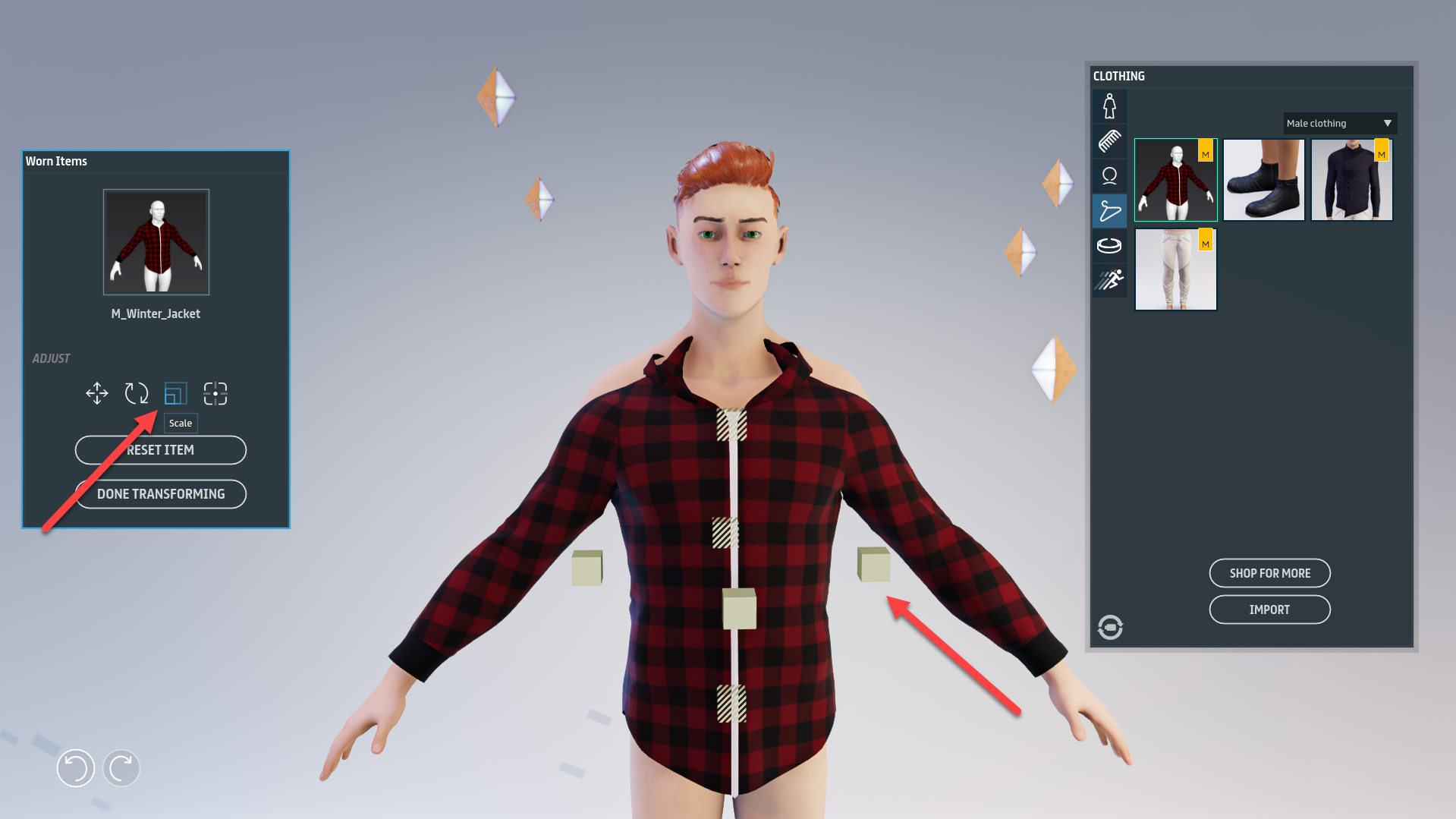 Sansar supports the following transform actions so you can fit articles of clothing better on an avatar: