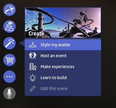 While in Sansar, click Create > Style my avatar from the main menu.