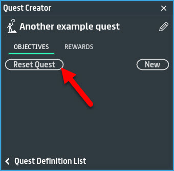 To delete a reward from a quest, select that reward and click the Delete, or click the trash icon for that reward from the Rewards tab of the Quest Creator panel.