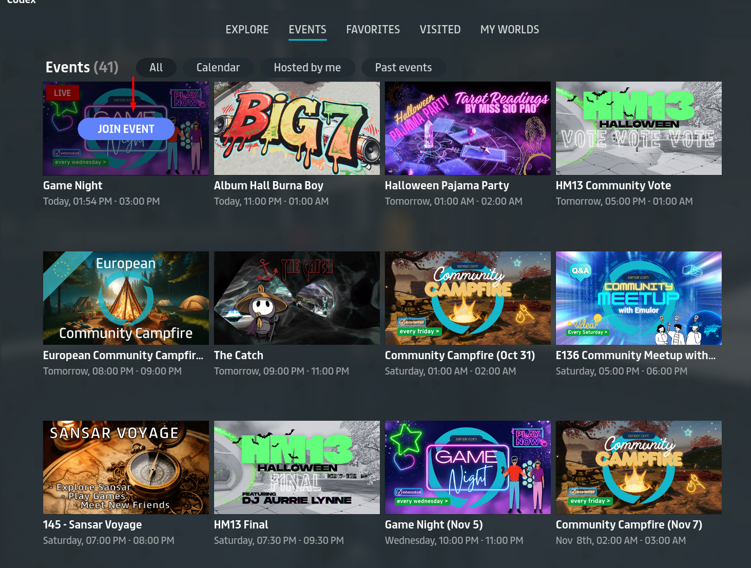 To check out an upcoming event on the Sansar website: