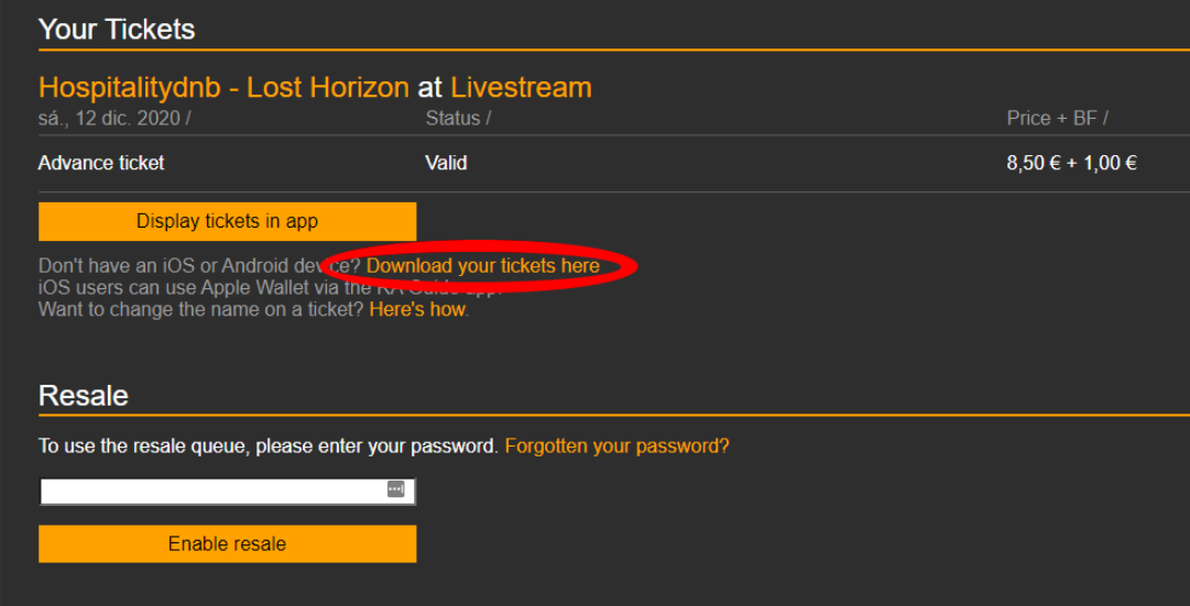 3. Find the option to "Download your tickets here"