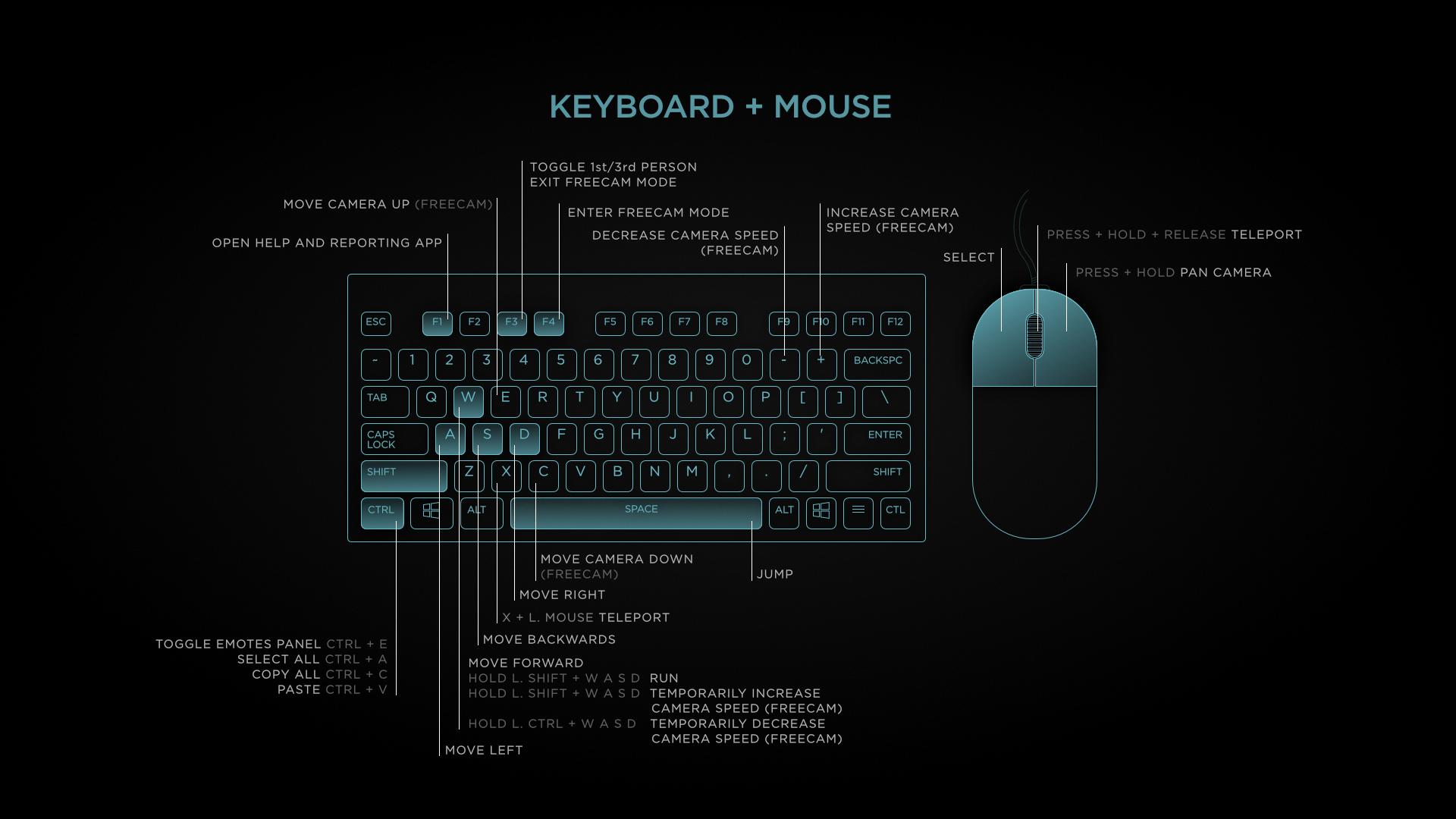 * **W,A,S,D:** Move your avatar forward, backward, left, and right.